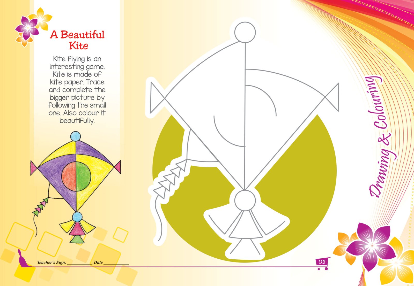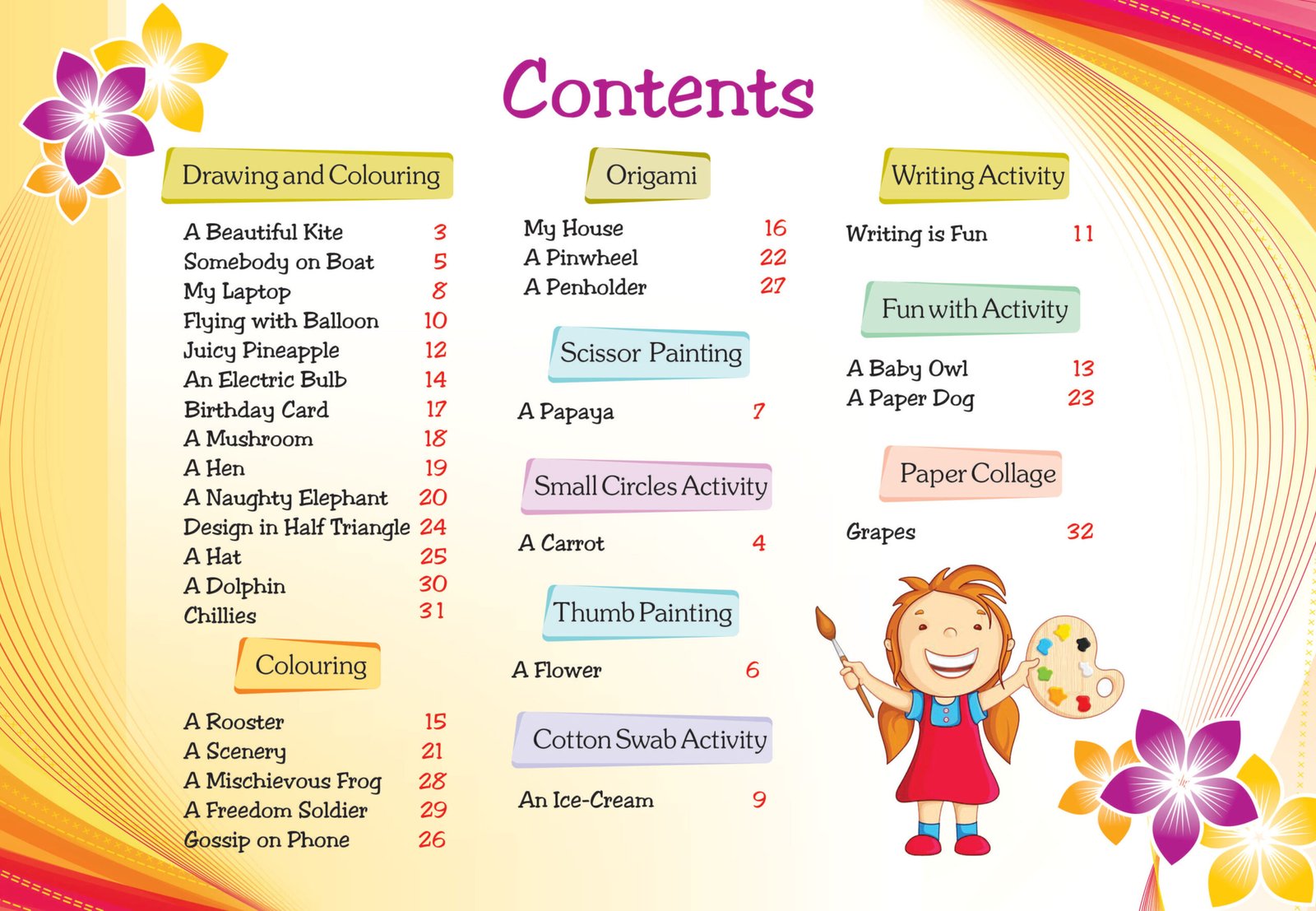 The series includes various activities of drawing, colouring, tracing painting, pencil shading, paper cutting, paper folding, paper craft, pasting objects, making impression, pattern making using different techniques like air blowing technique, etc.