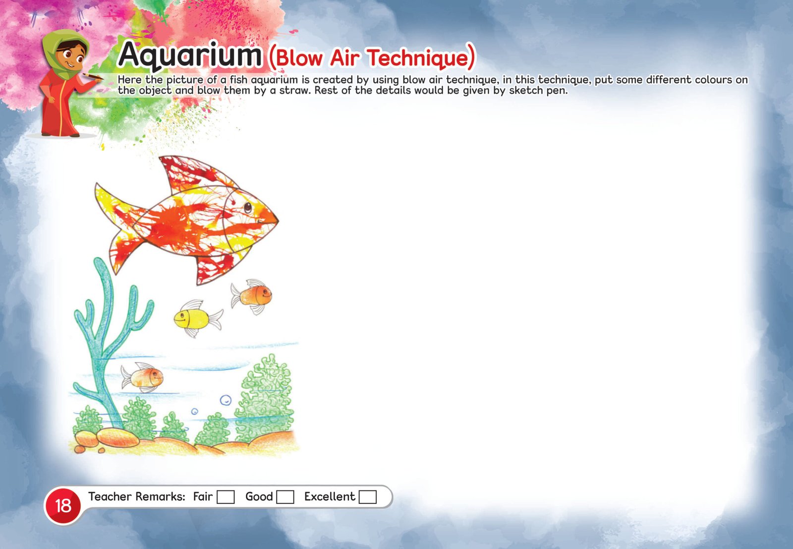 The series includes various activities of drawing, colouring, tracing painting, pencil shading, paper cutting, paper folding, paper craft, pasting objects, making impression, pattern making using different techniques like air blowing technique, etc.